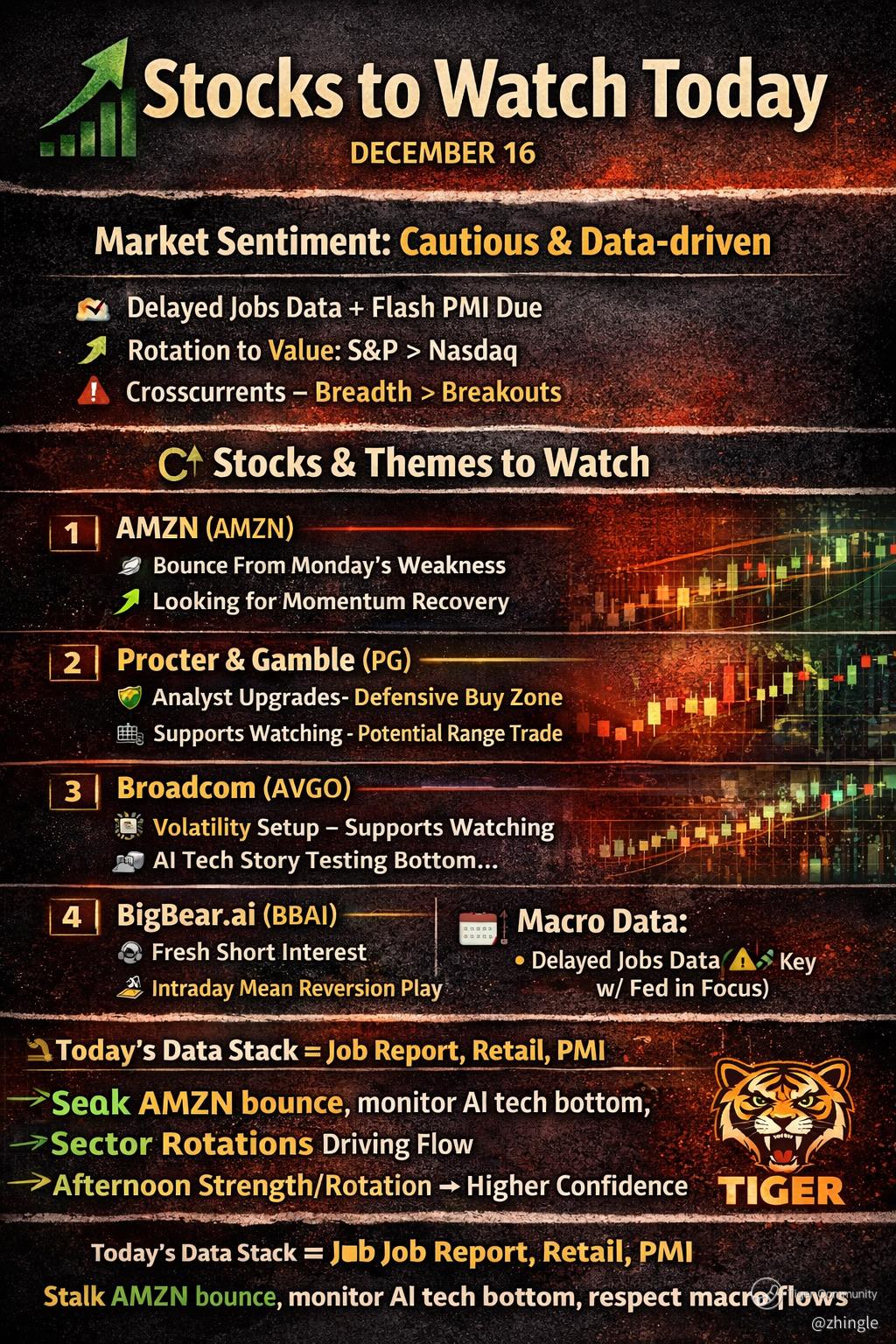 Quality giants (AMZN, PG) can rally into year-end if macro surprises soften. Broadcom & AI pulse checking today for rotation vs. retrace. Santa Claus rally still alive if liquidity returns.