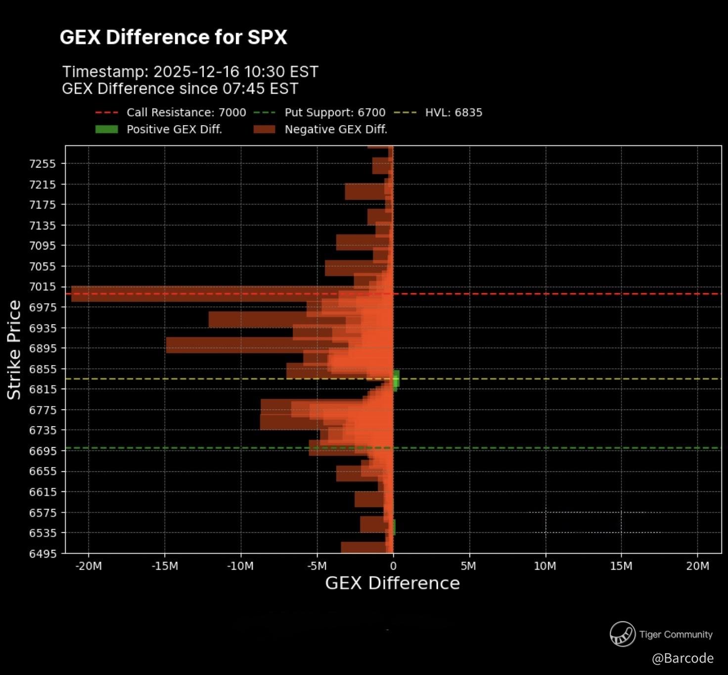 Negative GEX remains firmly in control across $SPX, compressing upside and turning price action mechanical. Rallies are met with supply, weakness persists longer than expected, and positioning now outweighs narrative. This is a dealer-dominated tape, not an emotional one.