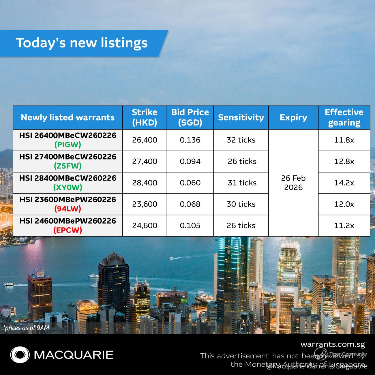 ✳HSI call $HSI 26400MBeCW260226(PIGW.SI)$: https://www.warrants.com.sg/tools/livematrix/PIGW