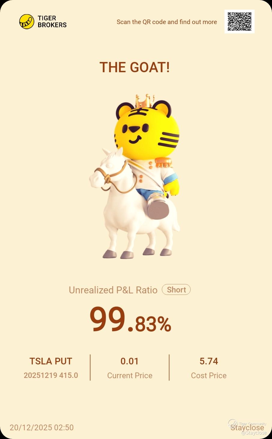 $TSLA 20251219 415.0 PUT$ Great way to end the week to see one of my Cash Secured Put position expire for maximum gain of profits.