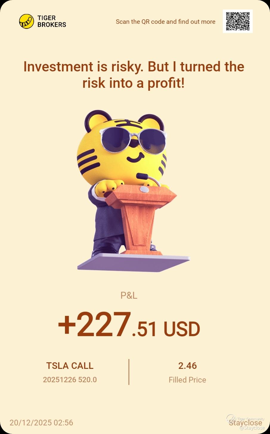 $TSLA 20251226 520.0 CALL$ Wasn't able to share this trade feed due to busy schedule.