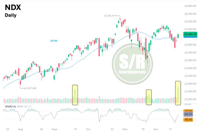 $NASDAQ 100(NDX)$ : The gigantic daily volume spike validates the bullish candle, recent occurrences suggest bullish continuation and is a positive factor for the "Santa Season".