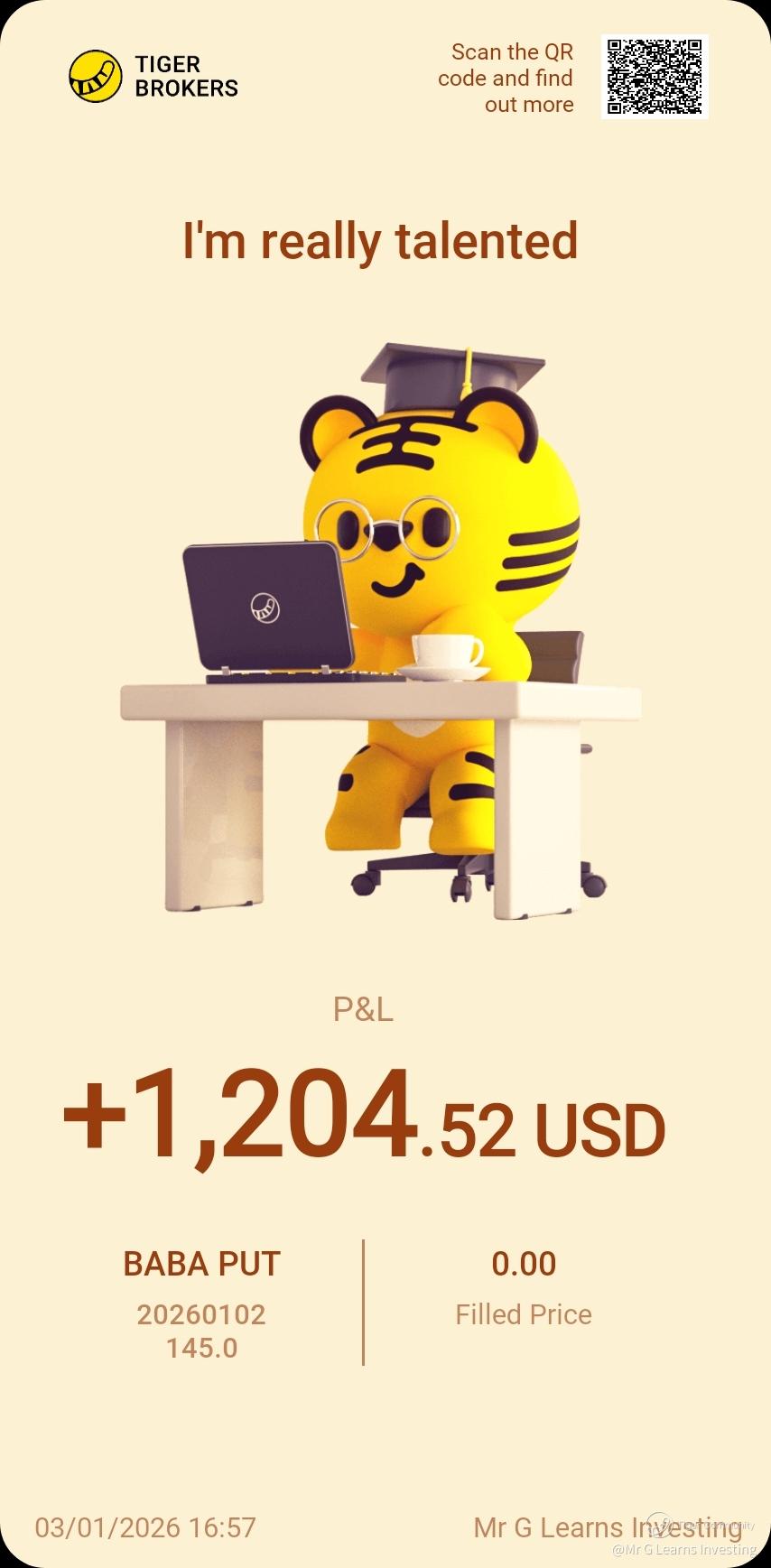 $BABA 20260102 145.0 PUT$ BABA strangle complete... TP liao[Cool]