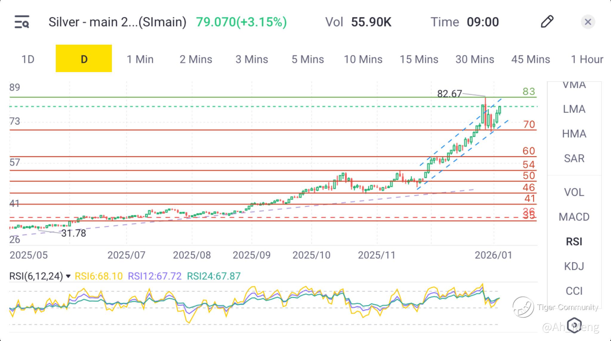Am I worried since I have been holding the line all these while? I am not worried but does have certain concern on the upcoming potential double top (remember $82 was the precious high?) From $82 to its current base at $70, that's a $58 target price! I do have some concerns as a result. However as a primal bull đ of silver, if that comes to pass, that's likely my accumulation region.