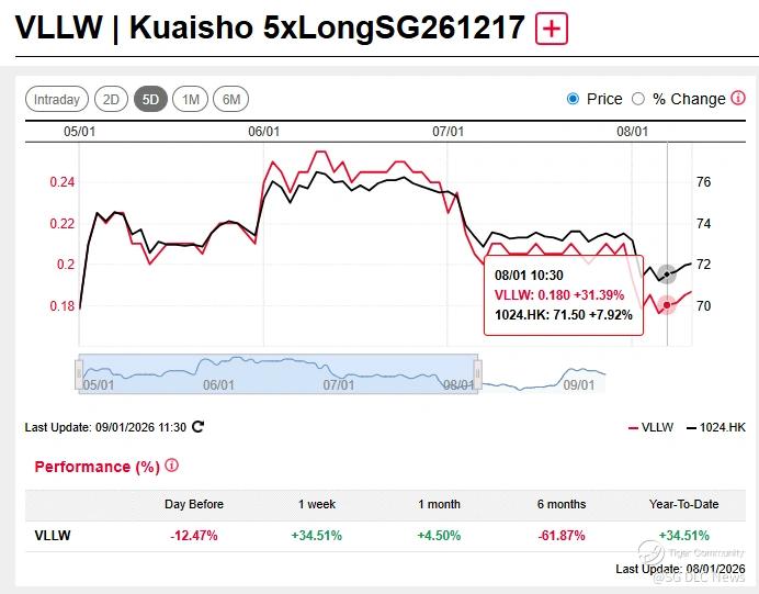 $KUAISHOU-W(01024)$ surged 11.09% on Monday (5 Jan), but rose as much as close to 14% intraday, on news of overseas traction for its AI video generator Kling. Reflecting this, the $Kuaisho 5xLongSG261217(VLLW.SI)$ jumped nearly 60% on Monday, with the Kuaishou 5x Short DLC down similarly on the same day.