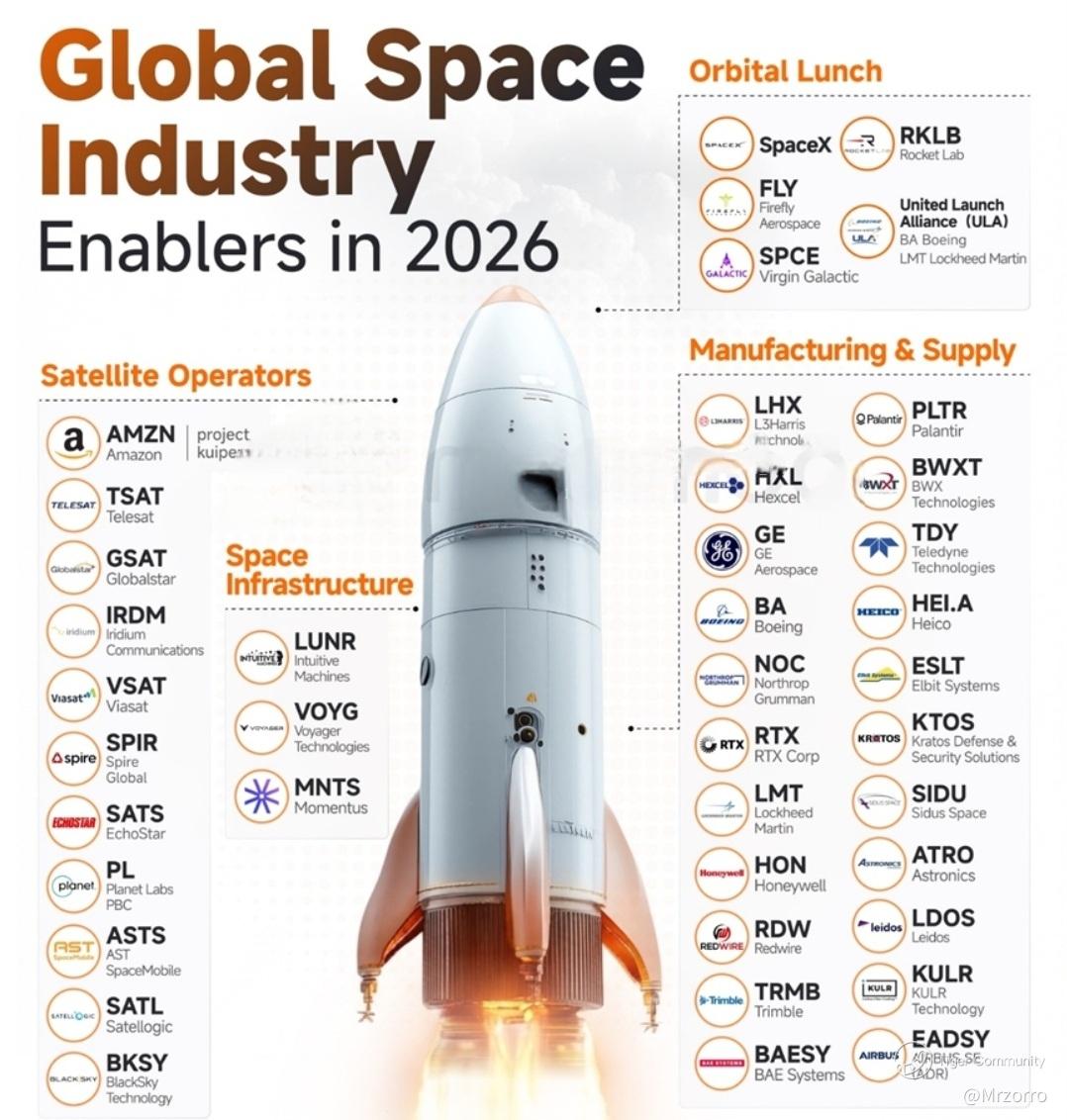 Besides Boeing and Lockheed Martin mentioned above, $Northrop Grumman (NOC.US)$, $RTX Corp (RTX.US)$, $GE Aerospace (GE.US)$, $L3Harris Technologies (LHX.US)$, and $AIRBUS SE (EADSY.US)$ are all reliable contractors for space defense orders.