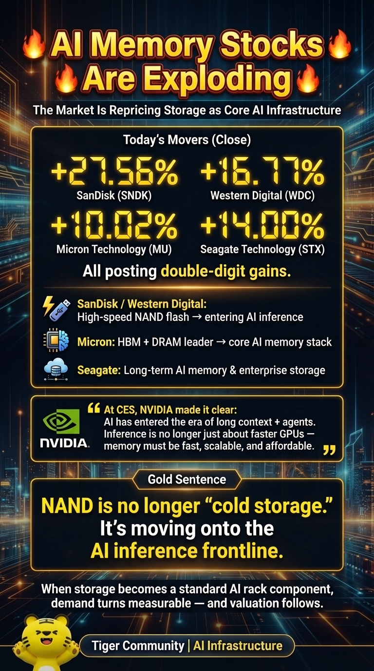 By pulling NAND into the core of AI inference at CES, NVIDIA has moved storage from the background to the front line. The entire storage sector has been revalued in one stroke.
