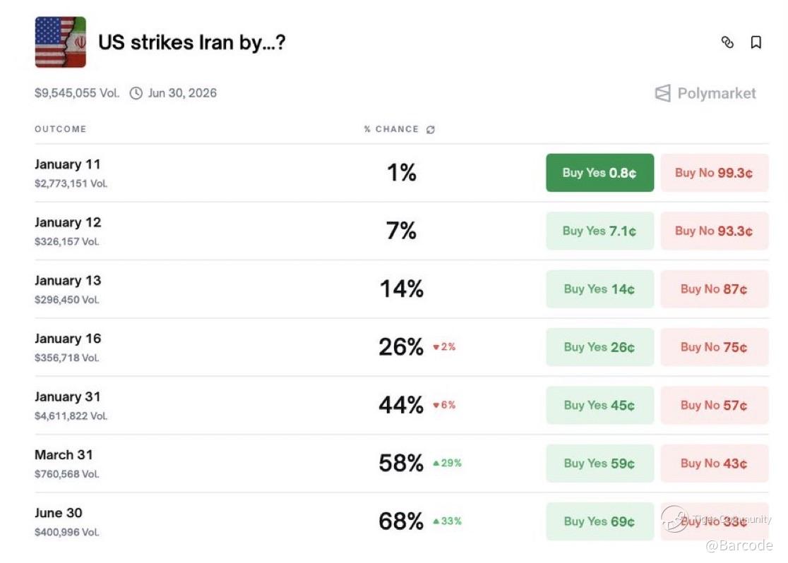 Ground invasion odds remain low at just 9% by 31Jan, which means the market is pricing precision strike risk, not full war.
