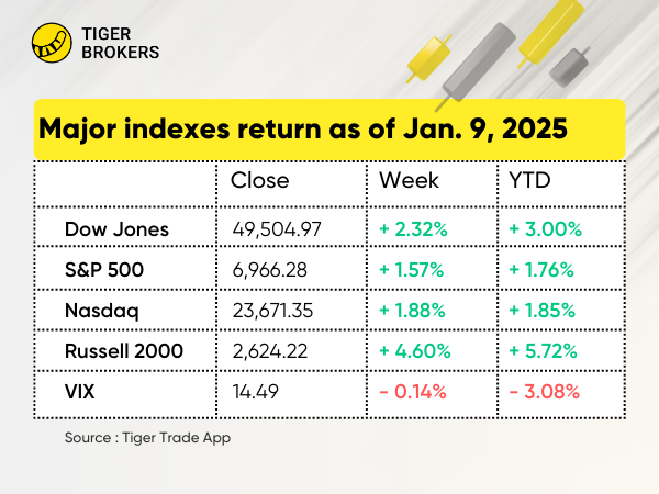 Fast week:The major U.S. stock indexes produced gains of around 2.0% in the first full trading week of 2026. The $S&P 500(.SPX)$ and the $Dow Jones(.DJI)$ surpassed record highs set two weeks earlier, and the $NASDAQ(.IXIC)$ climbed to within 1.2% of its historic peak set more than two months ago.