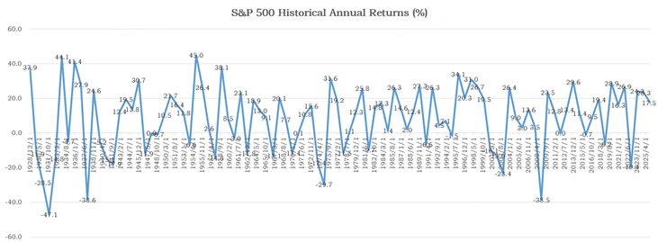 The most recent example was from 2019 to 2021, when the S&P 500 delivered double-digit gains for three straight years, followed by a sharp 19.4% decline in 2022.