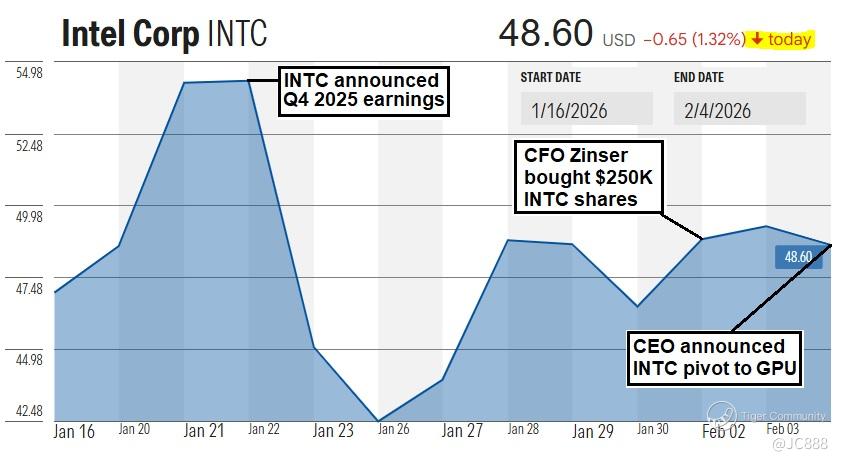 INTC also announced the hire of a Chief Architect - Eric Demers (veteran GPU designer) from $Qualcomm(QCOM)$, in a bid to chase Nvidia and $Advanced Micro Devices(AMD)$ in data center inferencing.