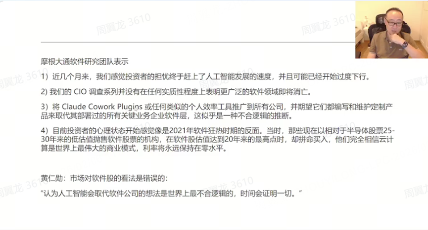 Institutional Views: J.P. Morgan believes investors’ concerns about artificial intelligence are overblown. Jensen Huang (CEO of NVIDIA) also argues that the idea of AI replacing software companies is illogical. Time will tell whether the recent sell-off in software stocks will be corrected.