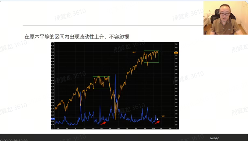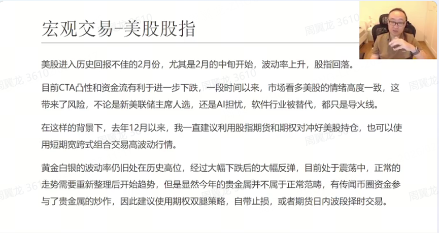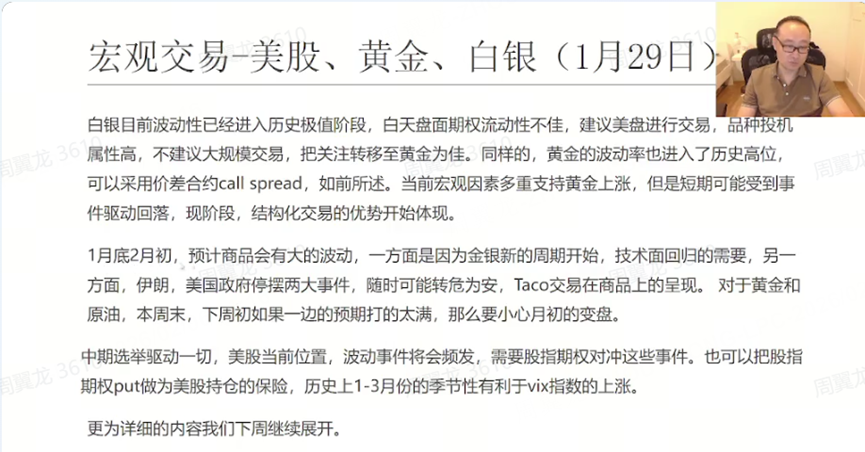 At the start of the class, the instructor first recapped last week’s sharp volatility in gold and silver: “After Thursday’s live session, on Friday and Monday, gold—and together with silver—experienced a historic plunge.” He emphasized that he had already warned beforehand that “major swings in commodities were expected around late January to early February.”
