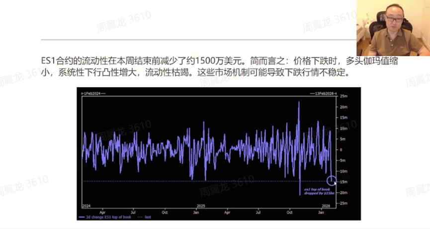 Another critical backdrop is weak liquidity. He cautioned that “liquidity is relatively thin… with about $15 million in market liquidity set to be withdrawn,” and stressed that in such an environment, “when prices start falling, they’re more prone to collapse-style drops.” The recent sharp plunge in gold and silver was a textbook example of this—“no buyers stepping in, leading to a long-squeeze-driven crash.” $Gold - main 2604(GCmain)$ $Silver - main 2603(SImain)$