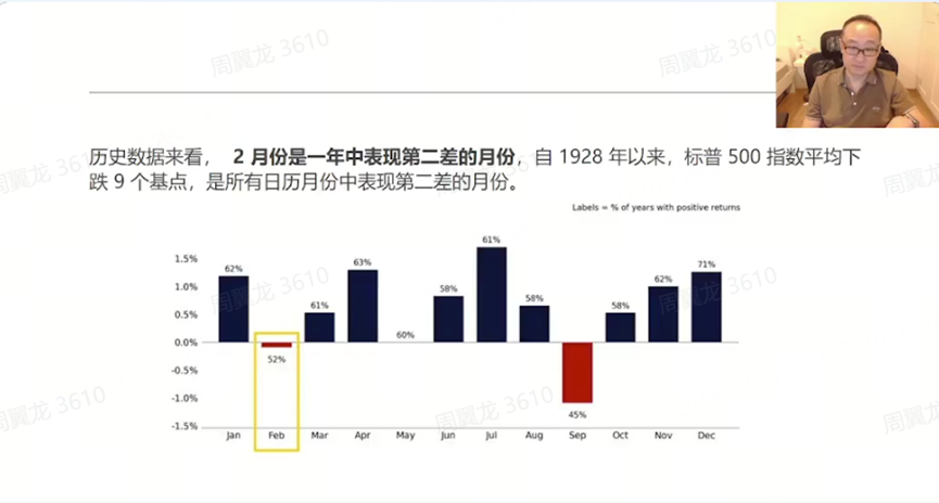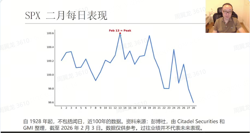 The instructor presented a clear historical statistic: based on nearly 100 years of data since 1928, “February is the second-worst performing month of the year,” and specifically, “the market tends to decline starting in the second half of February.”$Silver - main 2603(SImain)$ $E-mini Silver - main 2603(QImain)$ $Silver - Mar 2026(SI2603)$