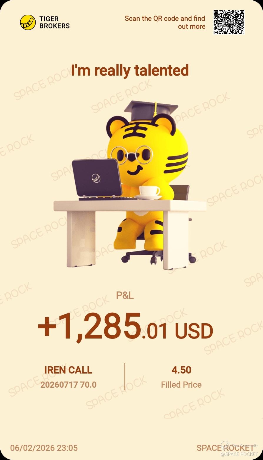 $IREN 20260717 70.0 CALL$ Take profit on calls. Will resell again.