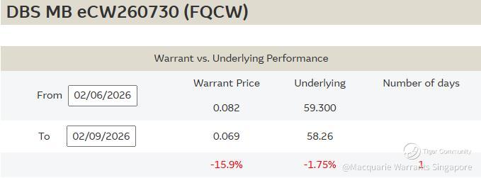 ✴Trending DBS put warrant $DBS MB ePW260630(RBFW.SI)$ (https://warrants.com.sg/tools/livematrix/RBFW) on the other hand, was up as much as 17.5% to SGD 0.067