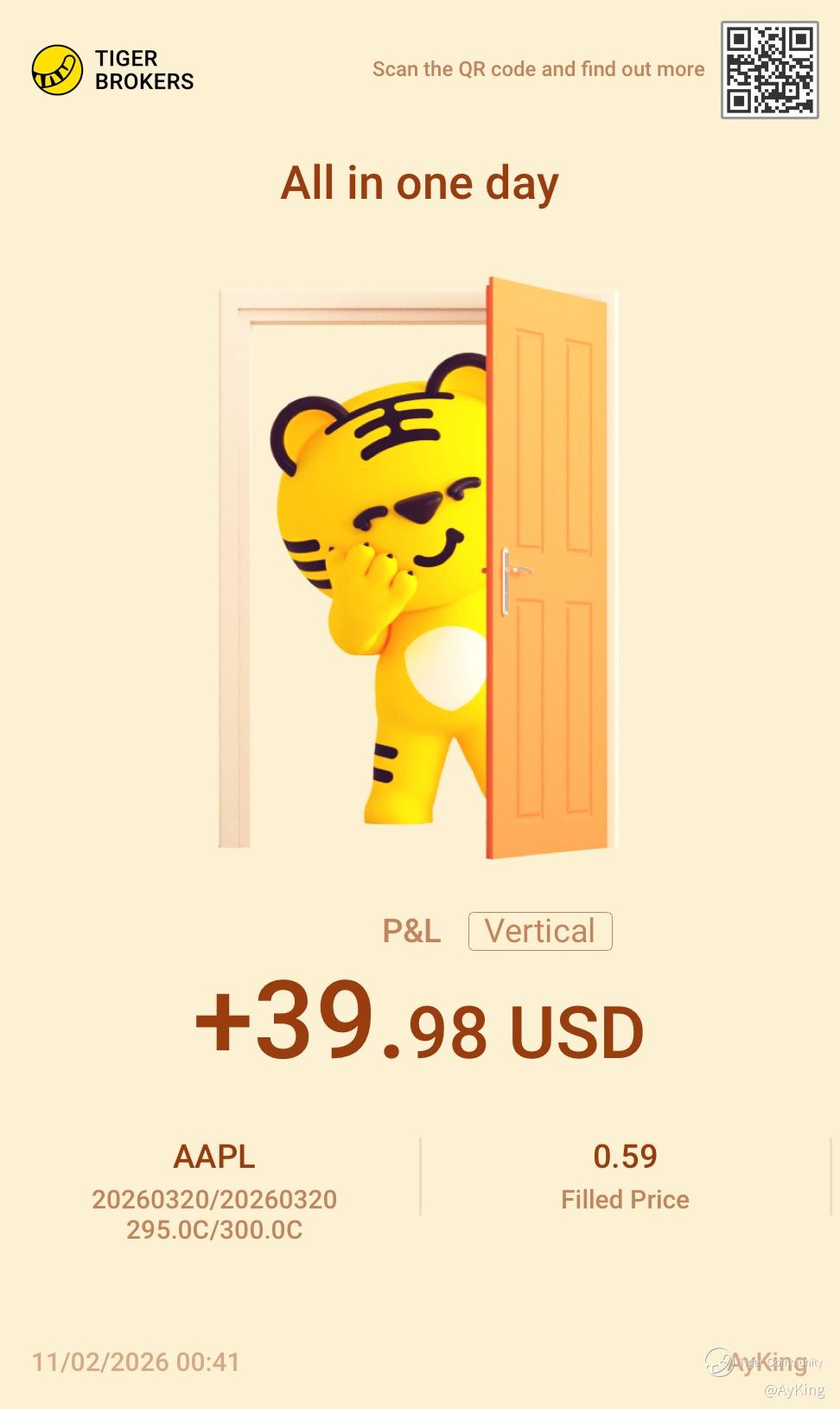 $AAPL VERTICAL 260320 CALL 300.0/CALL 295.0$ Manage to achieve about 50% of the premium within a 1-2 weeks. Hence, decided to close it to secure the profits. $AAPL VERTICAL 260320 CALL 300.0/CALL 295.0$