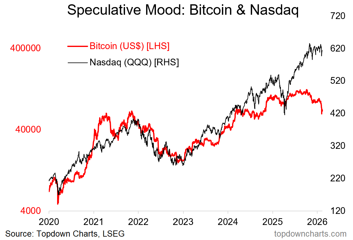 we’ve also witnessed some brutal price action in the Nasdaq’s old traveling partner (Bitcoin). As a barometer of tech/speculative sentiment, this is clearly painting a gloomy picture.