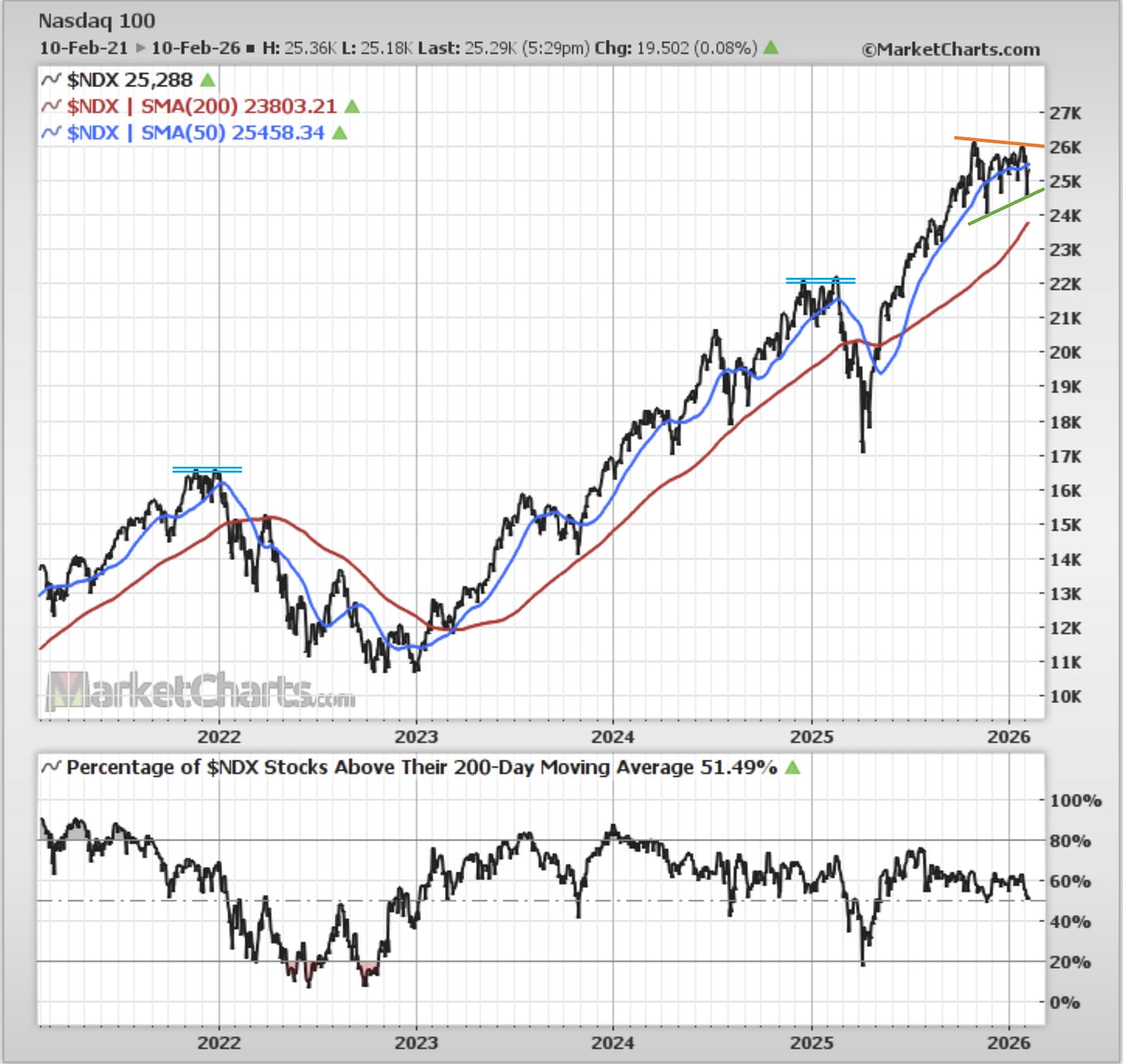 The Nasdaq 100 peaked on the 29th of October 2025, and has not yet made any further new highs since. Perhaps the only consolation is that it’s still technically in an uptrend (tracking above its upward sloping 200-day moving average), and most importantly — it has not outright broken down yet. $NASDAQ 100(NDX)$ $Invesco QQQ(QQQ)$ $E-mini Nasdaq 100 - main 2603(NQmain)$