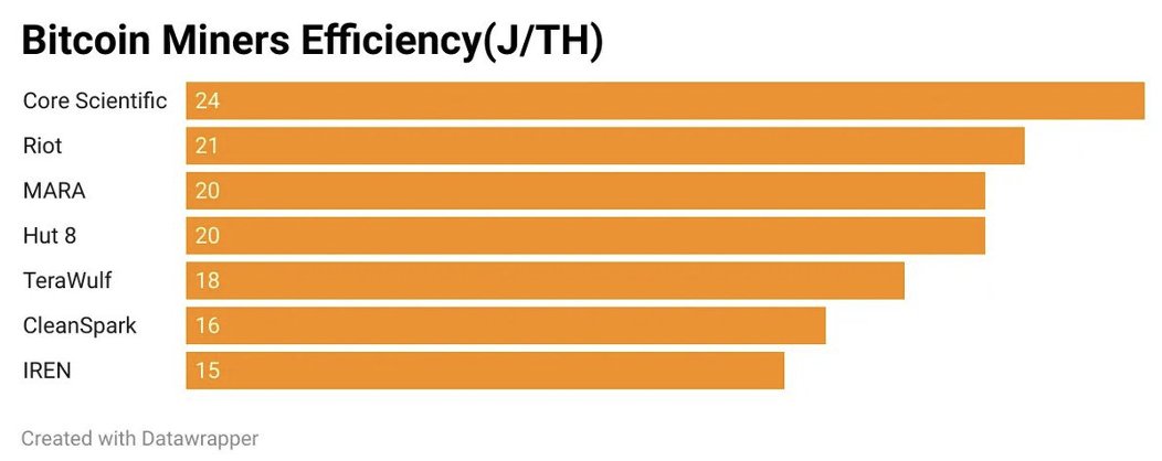 That is why crypto miners have a lot of experience in not only finding the location with the cheapest electricity but also designing energy-efficient data centers. A key metric used to measure the efficiency of a Bitcoin miner is joules per terahash (J/TH), which essentially shows how much electricity a miner uses to complete Bitcoin mining puzzles.