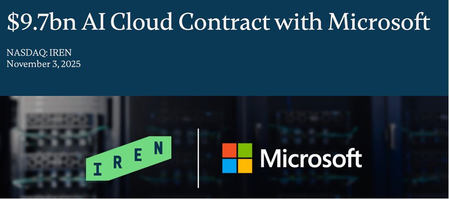 A few weeks ago, Iren signed a large and transformational $9.7B 5-year deal with $Microsoft(MSFT)$ !