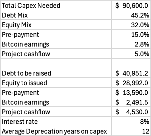 $41B of debt, $29B of equity, $13.6B of pre-payments, $2.5B of bitcoin earnings, and $4.5B from project cashflows.