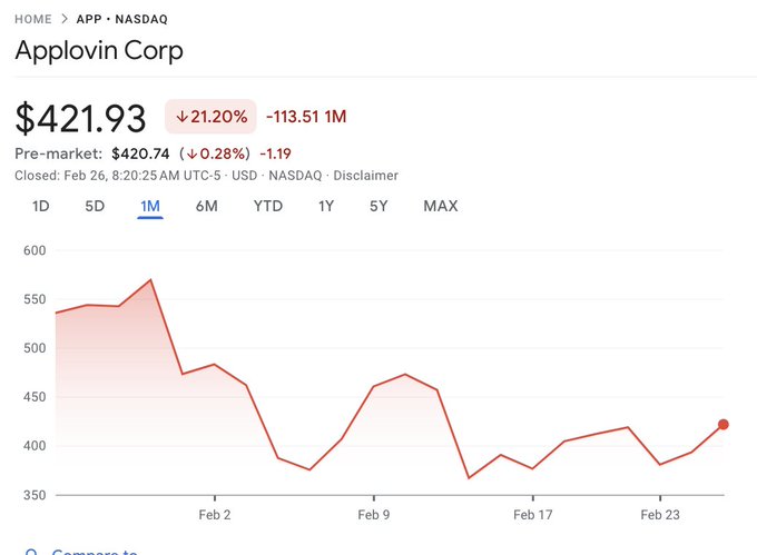 $AppLovin Corporation(APP)$ is down 20%+ 🔴