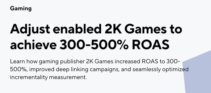 The video game developer 2K Games, famous for its NBA 2K series, was able to achieve a ROAS of 300-500%, thanks to Adjust.