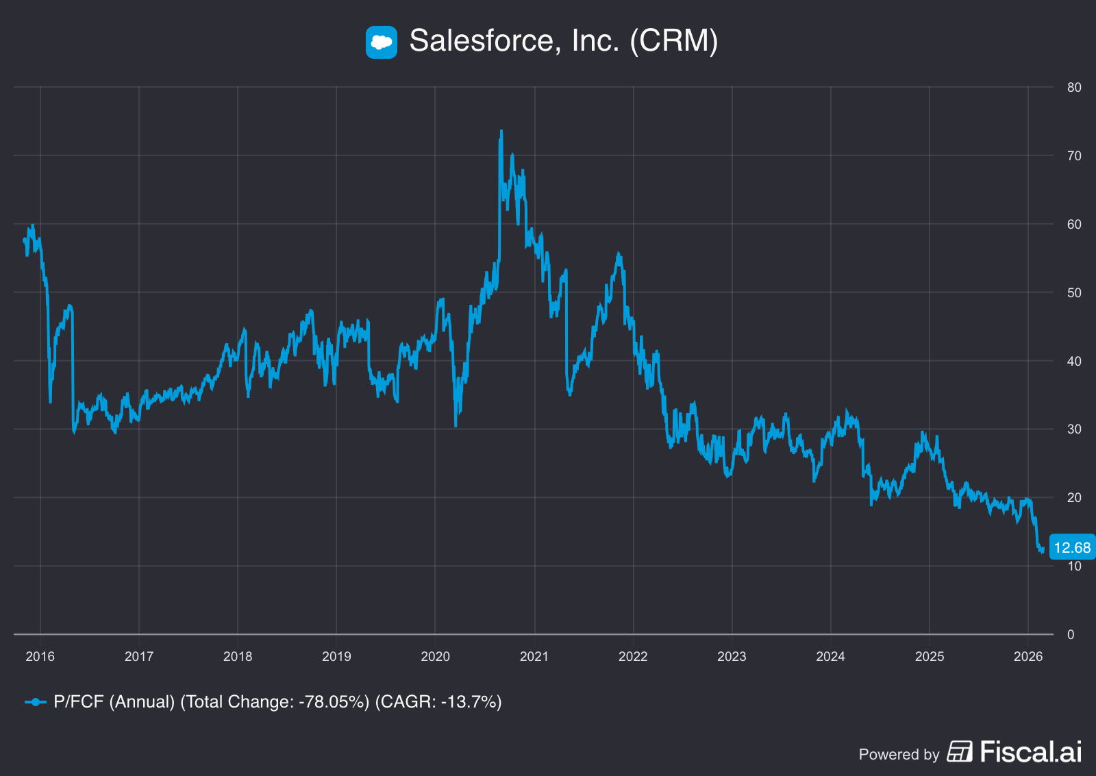 1) Historical multiples are backward-looking. There is a reason that CRM traded for 38x P/FCF in 2018. They were growing top-line at 25%, and EBIT margin was at 4%. There was a lot of potential for growth and margin expansion.