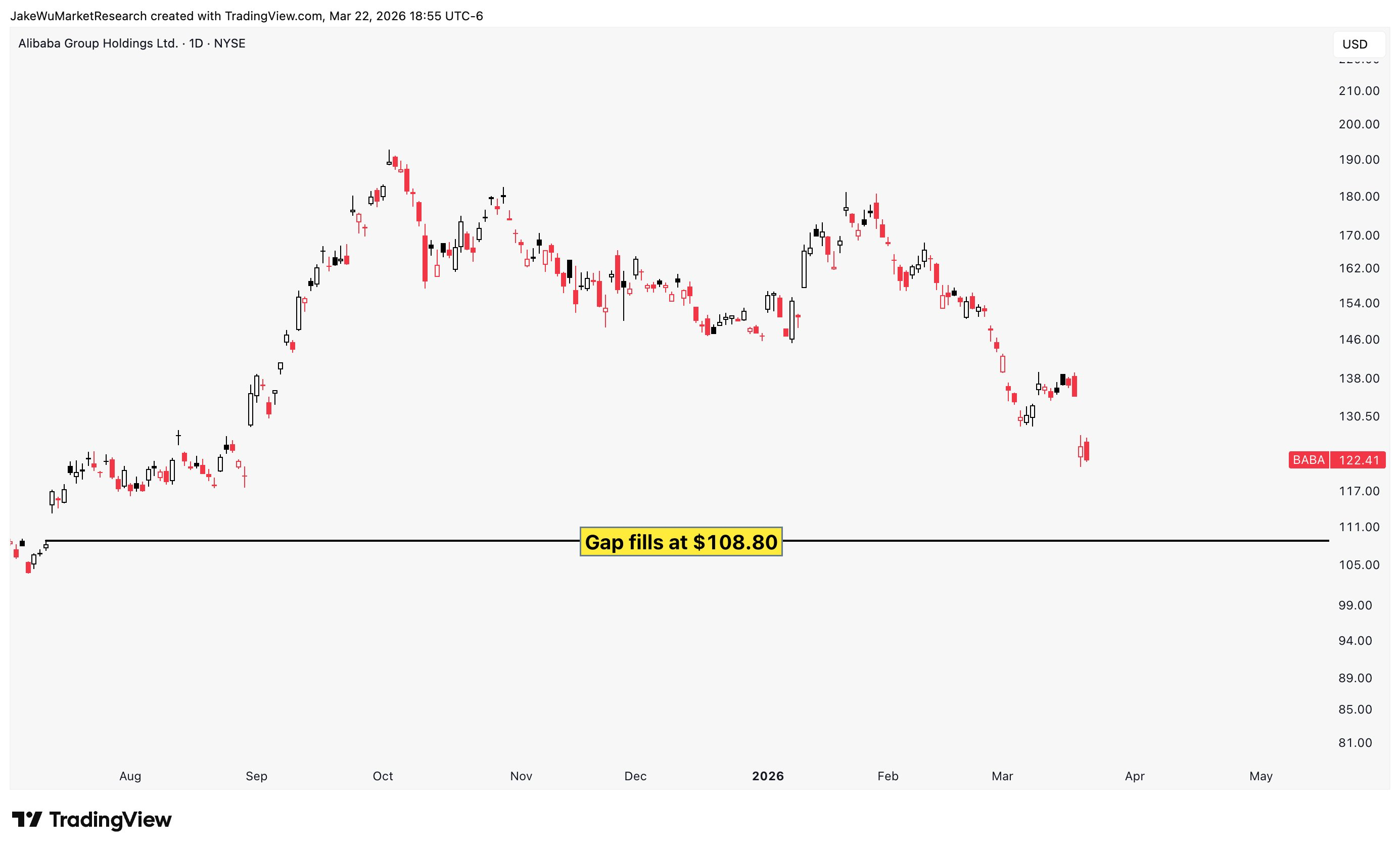 $Alibaba(BABA)$Still an open gap below at $108.80.