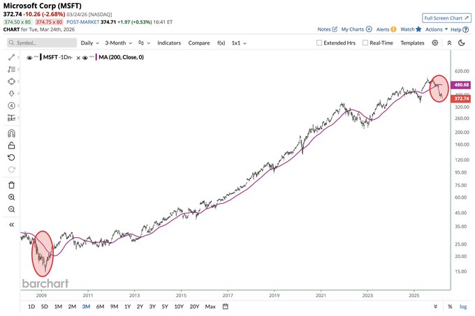 Microsoft $MSFT is now trading below its 200-day moving average by the largest margin since the Global Financial Crisis ππ€―π