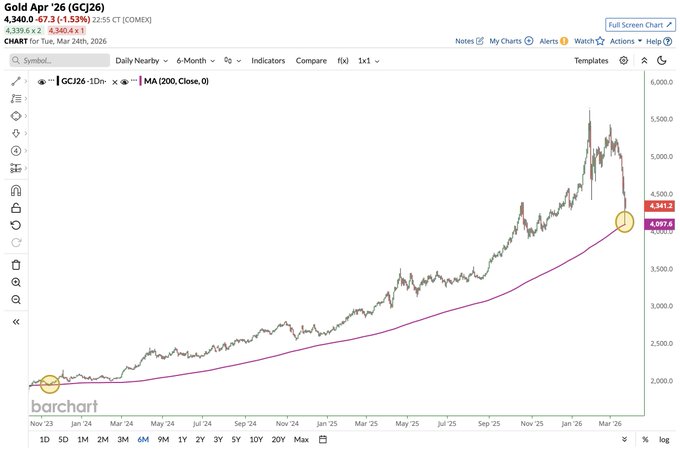 Gold with a beautiful bounce off the 200-day moving average π¨π¨ Last time it got that close to the 200D was late 2023 before it ripped more than 100% ππ