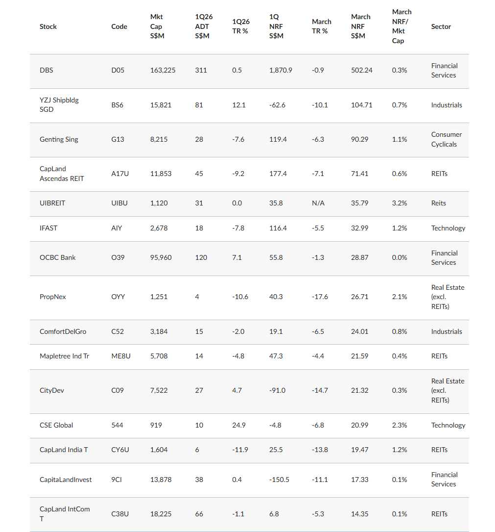 Over the first 17 trading sessions of March, retail investors net bought S$638 million of Singapore stocks. This lifted cumulative retail net buying in local stocks for 1Q26 to S$675 million as of 24 March.