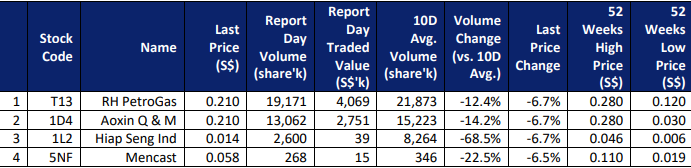 $RH PetroGas(T13.SI)$ $Aoxin Q & M(1D4.SI)$ $Hiap Seng Ind(1L2.SI)$ $Mencast(5NF.SI)$
