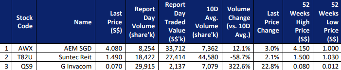$AEM SGD(AWX.SI)$ $Suntec Reit(T82U.SI)$ $G Invacom(QS9.SI)$
