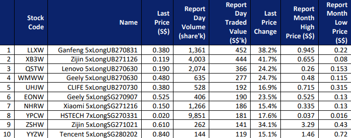 $Ganfeng 5xLongUB270831(LLXW.SI)$ $Zijin 5xLongUB271126(XB3W.SI)$ $Lenovo 5xLongUB270630(QSTW.SI)$ $Geely 5xLongUB270630(WMWW.SI)$ $CLIFE 5xLongUB270730(UHJW.SI)$ $Geely 5xLongSG270907(EONW.SI)$ $Xiaomi 5xLongSG271216(NHRW.SI)$ $HSTECH 7xLongSG270331(YPCW.SI)$ $Zijin 5xLongSG271021(ZSHW.SI)$ $Tencent 5xLongSG280202(YYZW.SI)$