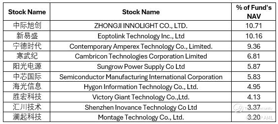CSA500’s underlying fund’s top 10 holdings (as of 2025/12/31)