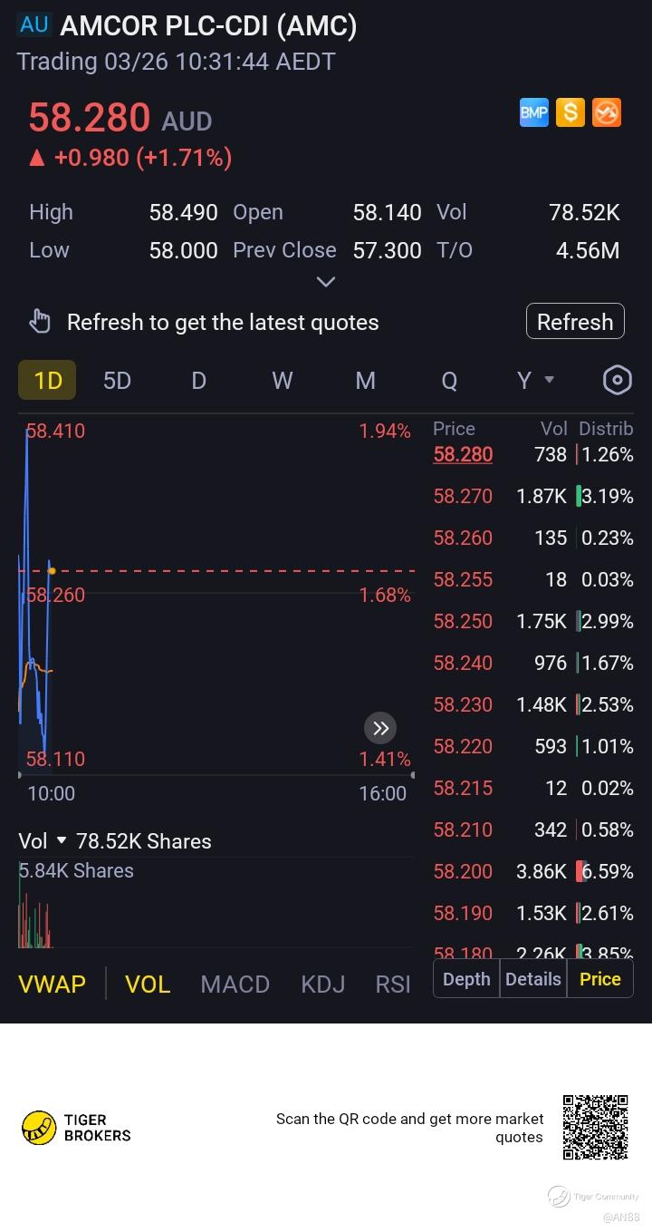 $AMCOR PLC-CDI(AMC.AU)$