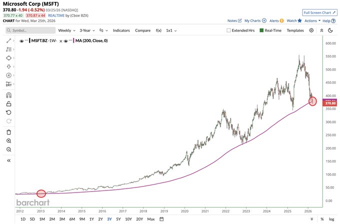 Microsoft $MSFT on track to close below its 200-week moving average for the first time in more than 13 years ππ