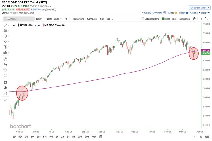 S&P 500 $SPY on track for its 5th consecutive close below the 200-day moving average, the longest streak since May ππ€―π