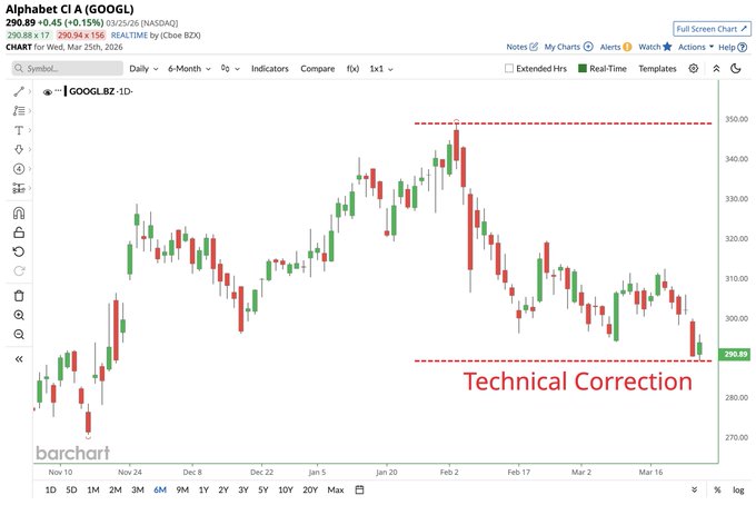 Alphabet $GOOGL has entered a technical correction after falling more than 10% from its February all-time high πππ