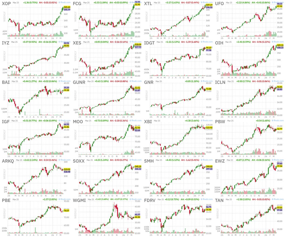 Top 24 Market Leading Industry Groups by 1-Month Relative Strength
