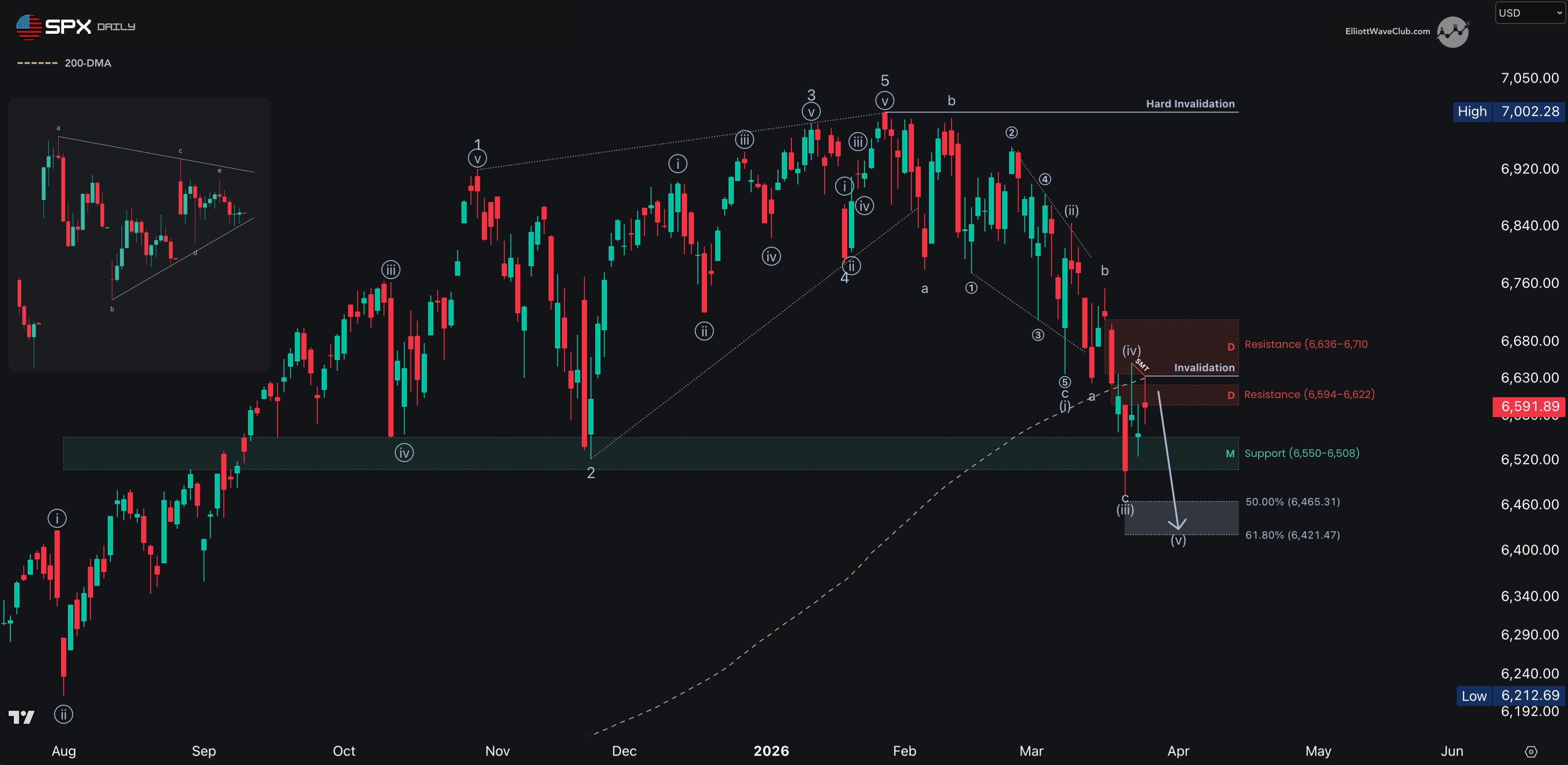 $S&P 500(.SPX)$ has resolved its sideways chop into a potential W4 triangle — complete A-B-C-D-E structure.