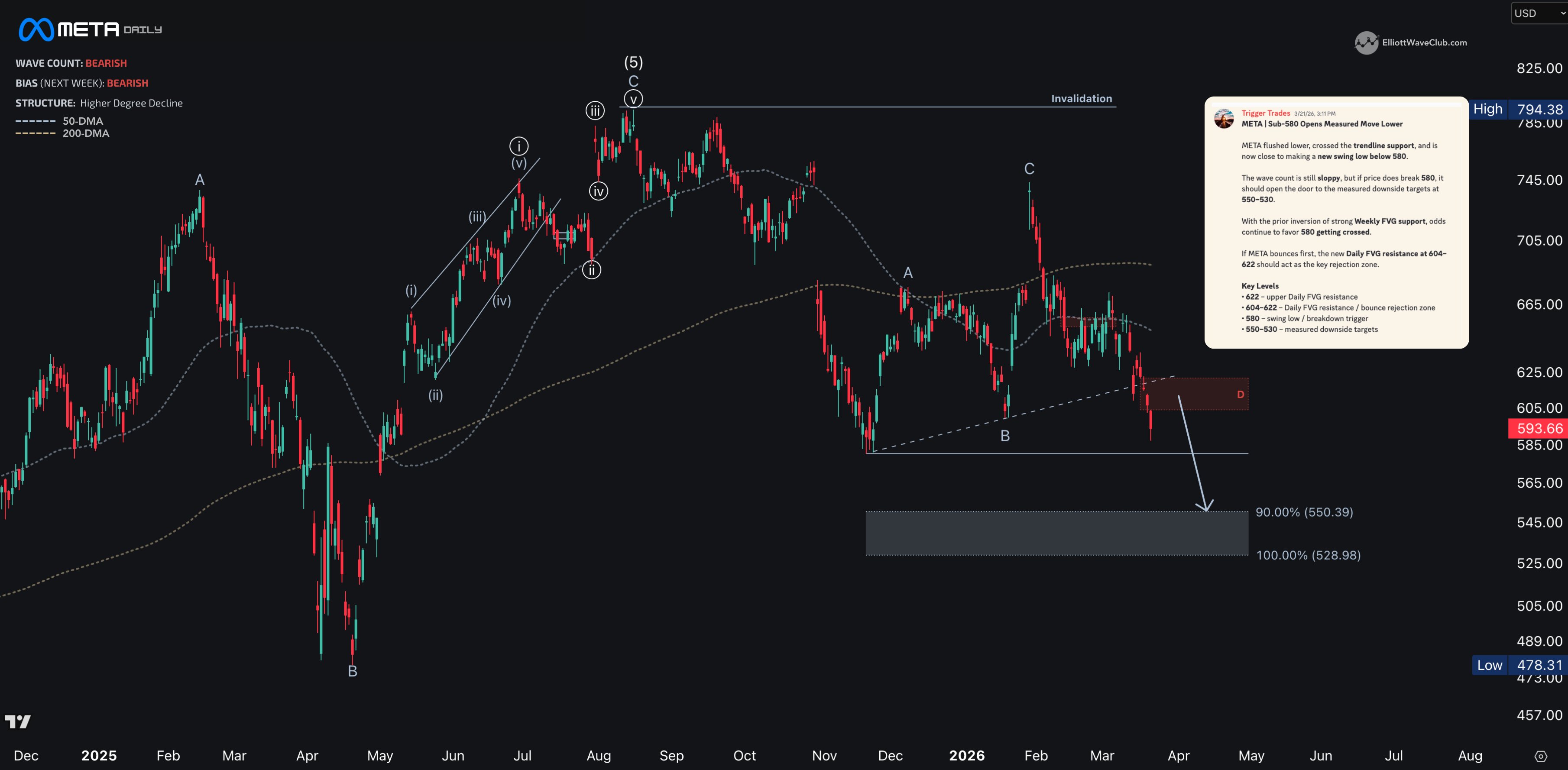 $Meta Platforms, Inc.(META)$ — I warned members this was heading to 550–530 when it was still above 600.