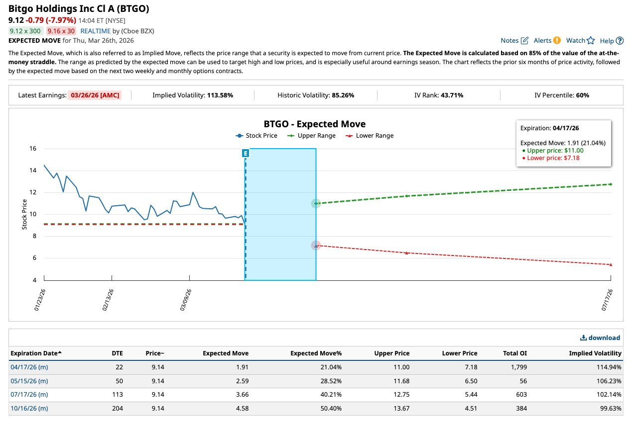 Anyone taking an #Optionselling trade on $BitGo Holdings, Inc.(BTGO)$ to play earnings? As with so many IPOs, this stock has come down so much from the IPO pump.