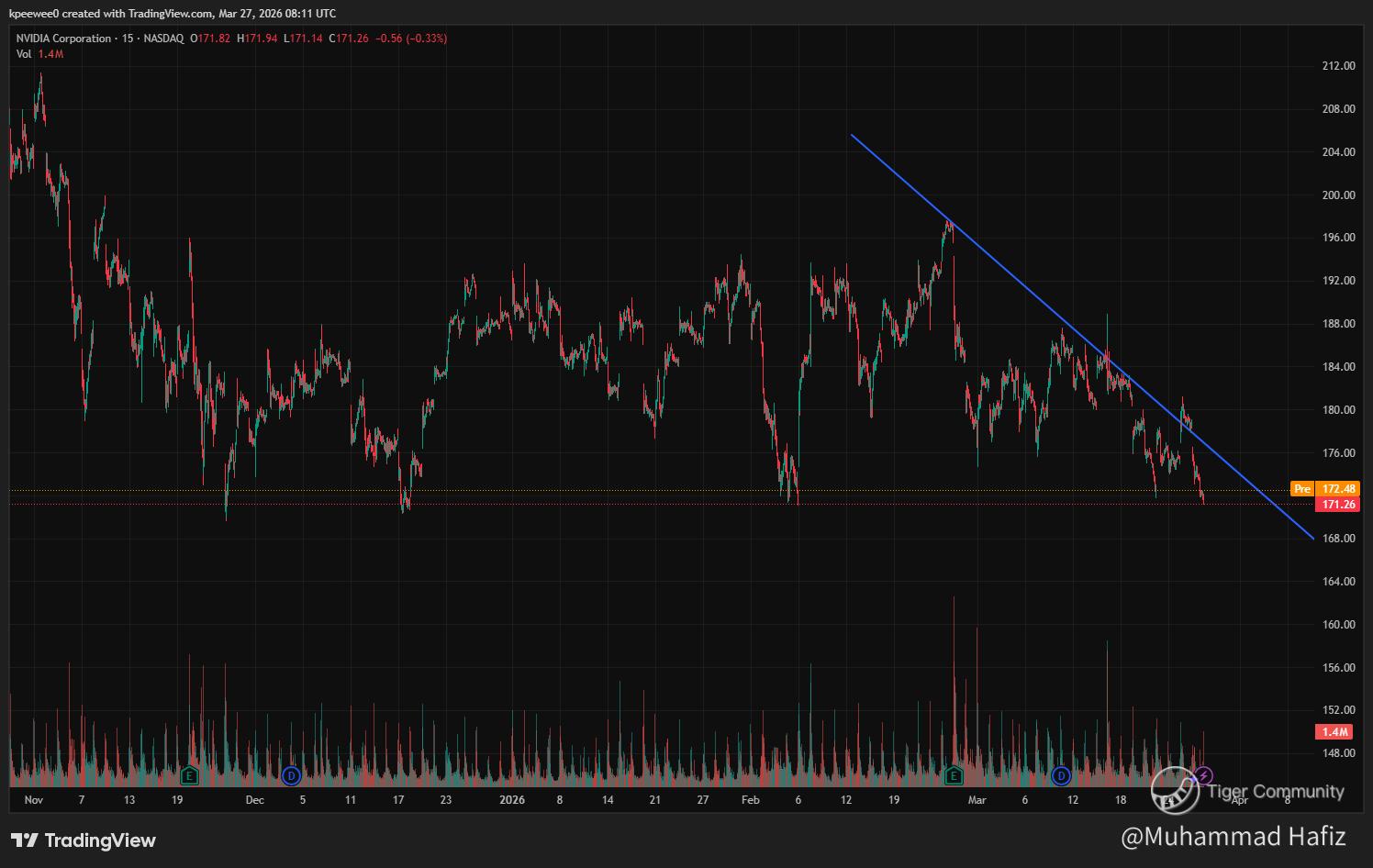 $NVIDIA(NVDA)$ is trading near its lowest valuation since the start of the AI boom.