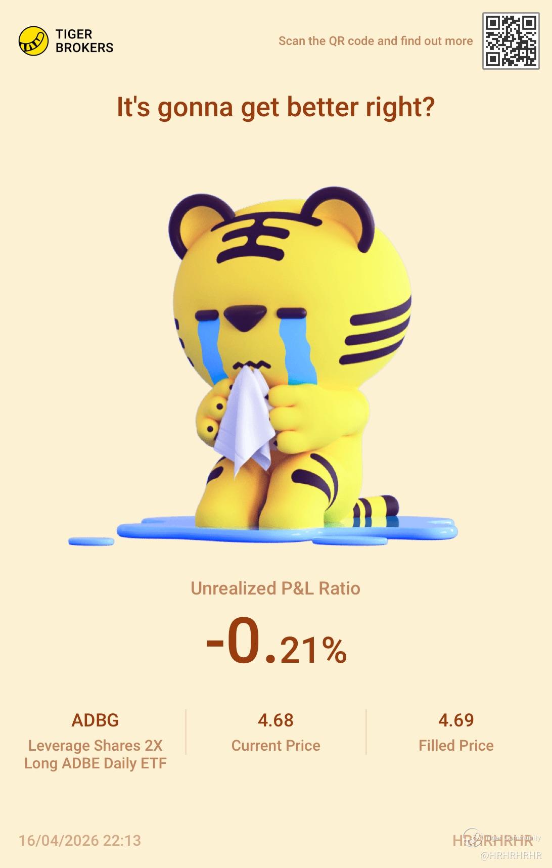 $Leverage Shares 2X Long ADBE Daily ETF(ADBG)$ $Adobe(ADBE)$ Bought some shares. Either a huge steal or a very bad buy. [Tongue] [Tongue]