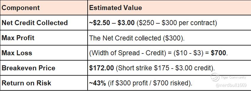 Sell 1 Put at $175 strike: You collect a high premium because this is close to the current price ("At-the-Money").