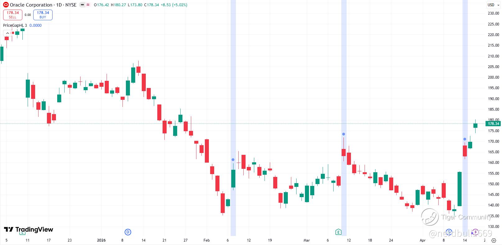 $Oracle(ORCL)$'s recent 5% surge (trading around $178–$180 as of mid-April 2026) is fueled by a significant expansion in its multicloud partnership with AWS. This deal allows customers to connect Oracle Cloud Infrastructure (OCI) and AWS with high-speed, private links—effectively making Oracle’s database services a first-class citizen within the Amazon ecosystem.